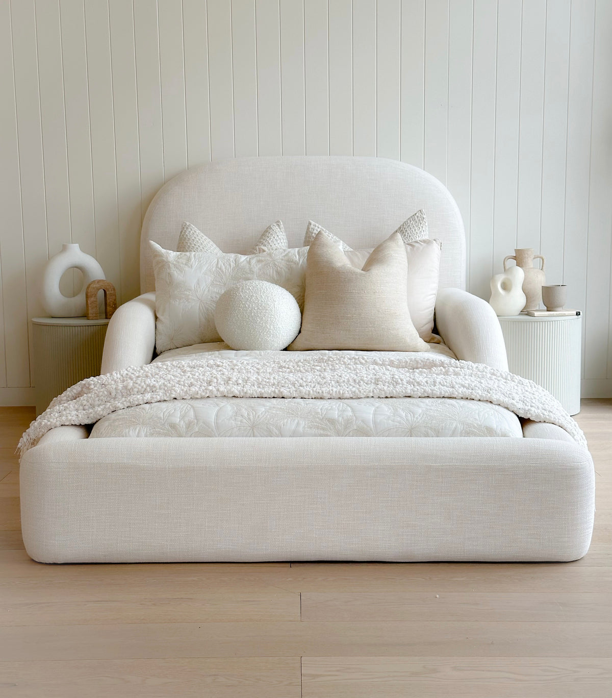 You can secure your custom piece with a 50% deposit today. There’s no need to select your fabric or have your mattress ready just yet, simply reserve your spot in our production queue and take your time finalising the details.